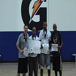 After Nicole spoke, the ten teams took to the courts to compete in four games each. Many of the participating teams represented community churches or businesses, including radio station103.9 The Fish, who provided promotion and coverage of the event. Joe Flores & Associates sponsored Team Flores and provided bottled water for the tournament participants. In the end, Team Destiny, representing Destiny Christian Church, was named the tournament champions, and Team Has Beens took second place.